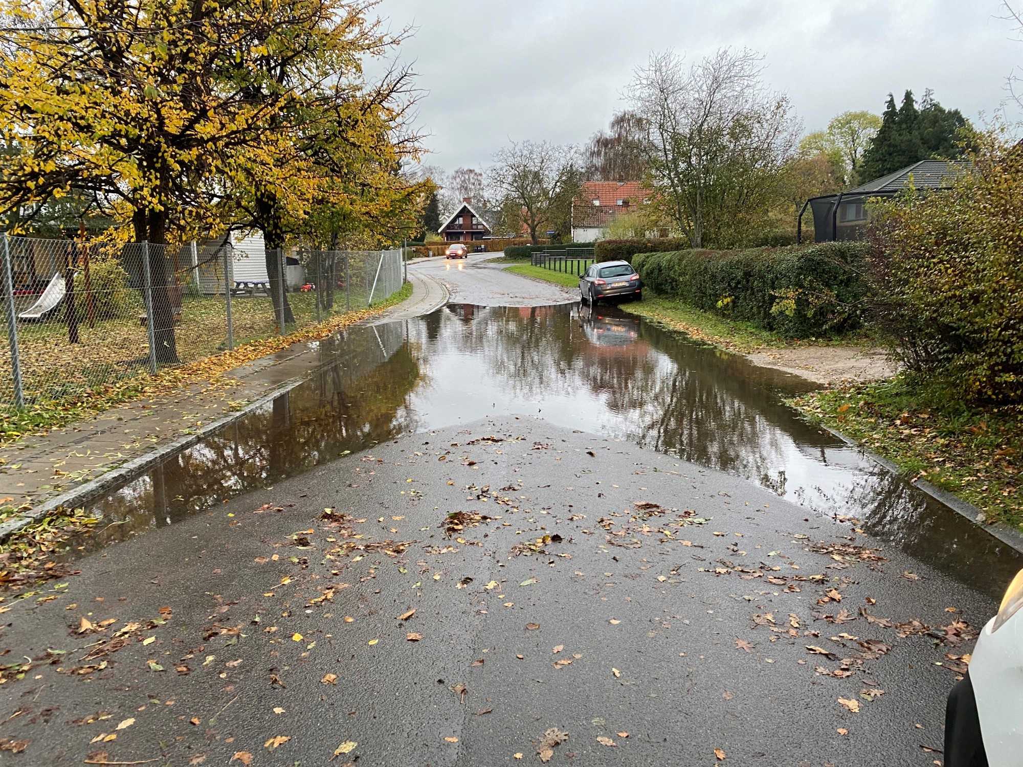 Er der vand på vejen? Se, hvem der har ansvaret, når der er vand på privat fællesvej, offentlig vej eller statslig vej. Ofte kan du selv hjælpe vandet væk ved at feje blade væk fra rendestensristen.